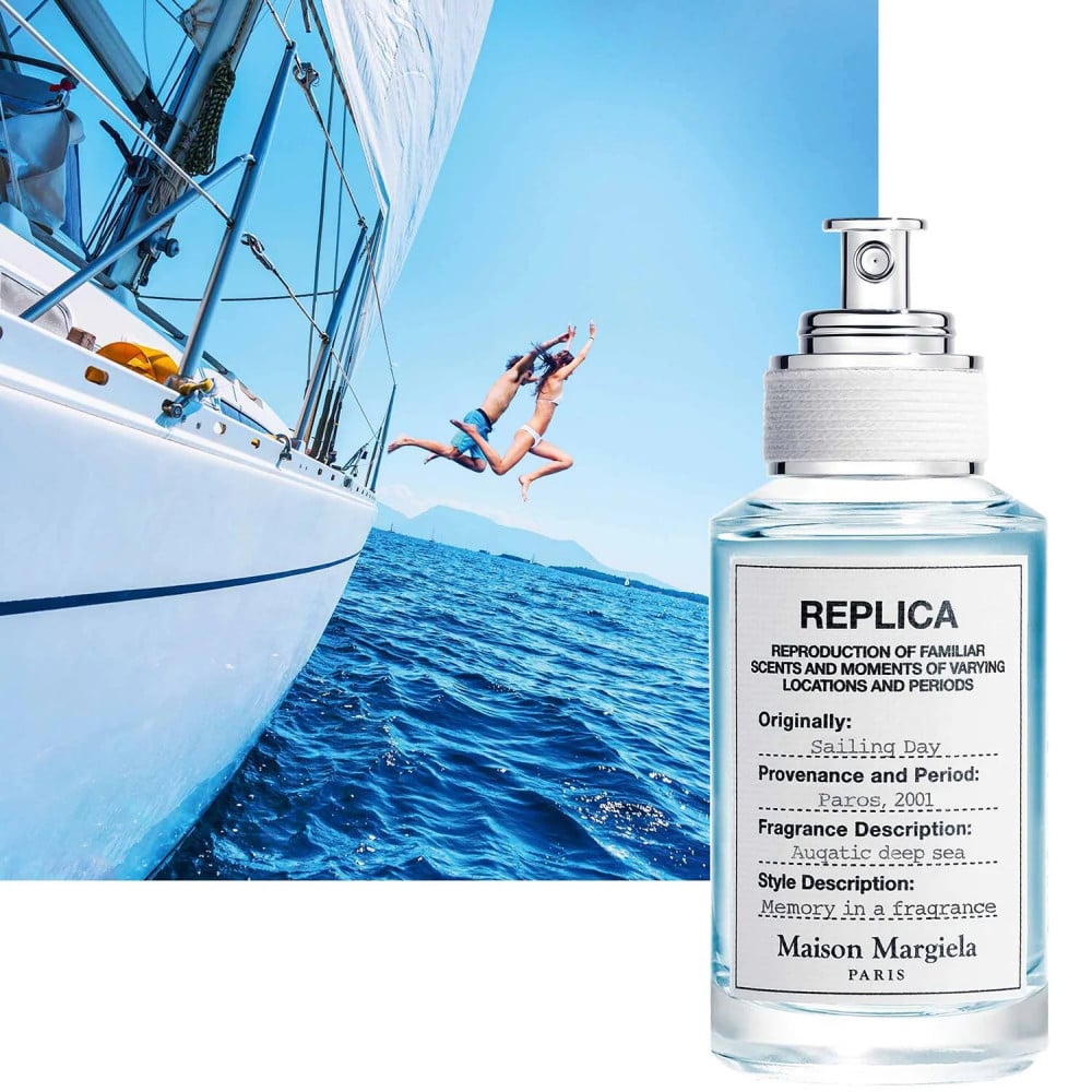 لنذهب إلى رحلة مع عطر "ميزون مارجيلا سايلينج داي"، 100 مل المناسب للجنسين، هناك نجد أنفسنا في الكثير من الروائح الجميلة، حيث تفتح الافتتاحية العطرية بنسمات لطيفة من البحر كأنها لمسة رقيقة من الأمواج تلامس بشرتنا بعناية، تستنشق الالدهيدات ويندفع الفلفل الأحمر والكزبرة بقوة فائقة كأنهما موجة جميلة وفي قلب هذه الرحلة نغوص في بحر من الأزهار حيث يتناغم العرعر والسوسن والأميل ساليسيلات والورد وقاعدة العطر ممتعة يجتمع الخشب والطحالب البحرية حيث انها خليط غير متماثل ولكن متجانس ومن الآمبرغريس الجميل و من خشب الأرز وخشب العنبر، كل هذه المكونات اجتمعت من أجل شيء واحد وهوا صناعة