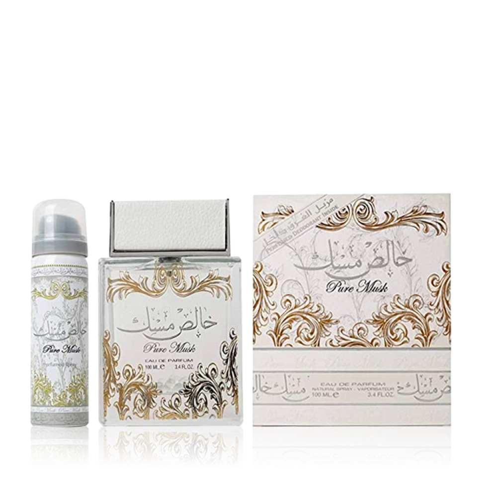 لطافة مجموعة هدايا بيور مسك ( أو دو برفيوم 100 + ميموريز مزيل العرق 50 مل)